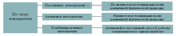 При этом, ультразвуковые и радиоволновые извещатели относятся к активному, а все остальные - к пассивному типу извещателей. Кроме указанных, существуют извещатели, использующие иные физические принципы действия: емкостные, индуктивные, электромагнитные и др.