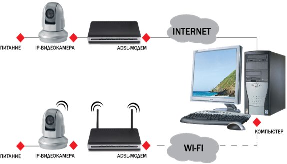 Отдельно стоит упомянуть, что есть возможность смонтировать видеосистему, используя беспроводные технологии (Wi-Fi, радиоканал). Такое построение систем дает возможность не прокладывать сигнальные кабеля по всему объекту от камер к видеозаписывающему устройству, а необходимо только подключить камеру к сети 220V.