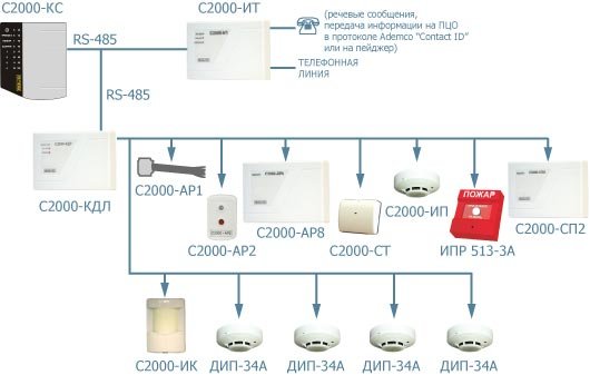 Компоненты пожарной сигнализации: