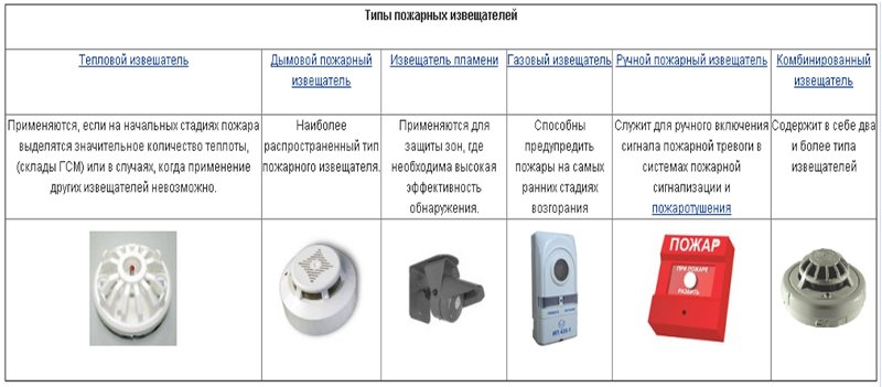 Типы пожарных извещателей: